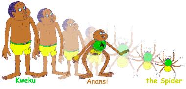 According to Akan storytellers in Ghana, Kwaku Anansi, was born on his day-name for Wednesday. He was once a man, turned into a spider for an infraction against his father, N’yame the Great Sky God. His mother was Asase Ya, the Earth Goddess. His having a web, philosophically, like the Amerindian hammock made him a creature existing between Heaven and Earth. Small in statue but big on brains as the spider-man he had to use his brainpower to outsmart larger brings. So, children naturally identified with Anansi. Since his stories may seem to ridicule a listener, the storyteller had to make a disclaimer, such as, “This is just a story. I’m not pointing out anyone in particular!”