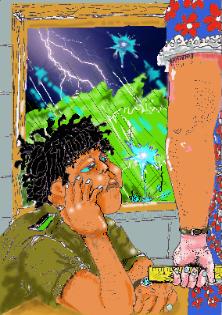 Above: Ticky-Ticky’s classroom distraction causes him to be forced to bring his missing father, Anansi into school before he is expelled.So, his adventure begins.
